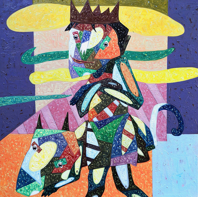 Dream of dog - Oil on canvas Masked Hunter and Ladybird - Oil on canvas The Hare and The Hound Myth - 65x81 - Oil on canvas Together- 81x100 - Oil on canvas Pinocchio and Don Quixote - Oil on canvas