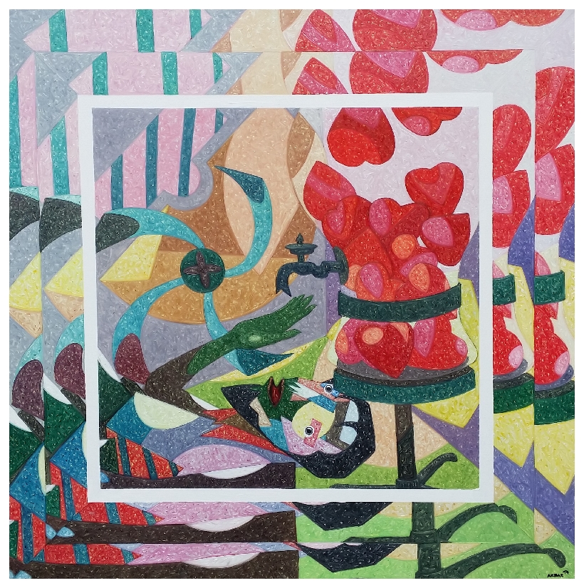 Harika Elma - 150x150cm - TUYB Otoportre Uğur Böceği - 55x55cm - TUYB Tuzağa Davet - 150x200cm - TUYB Uçurtma Rüyası - 200x150cm - TUYB Fırtınada ressam, yelkenli ve paleti-200x250-TUYB
